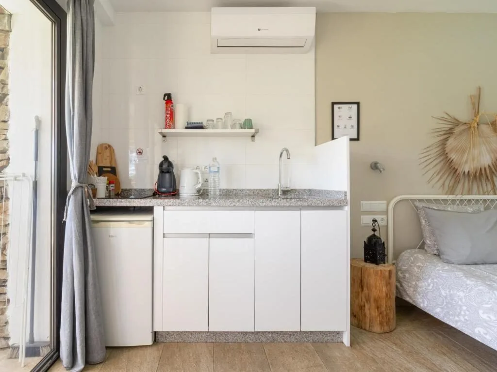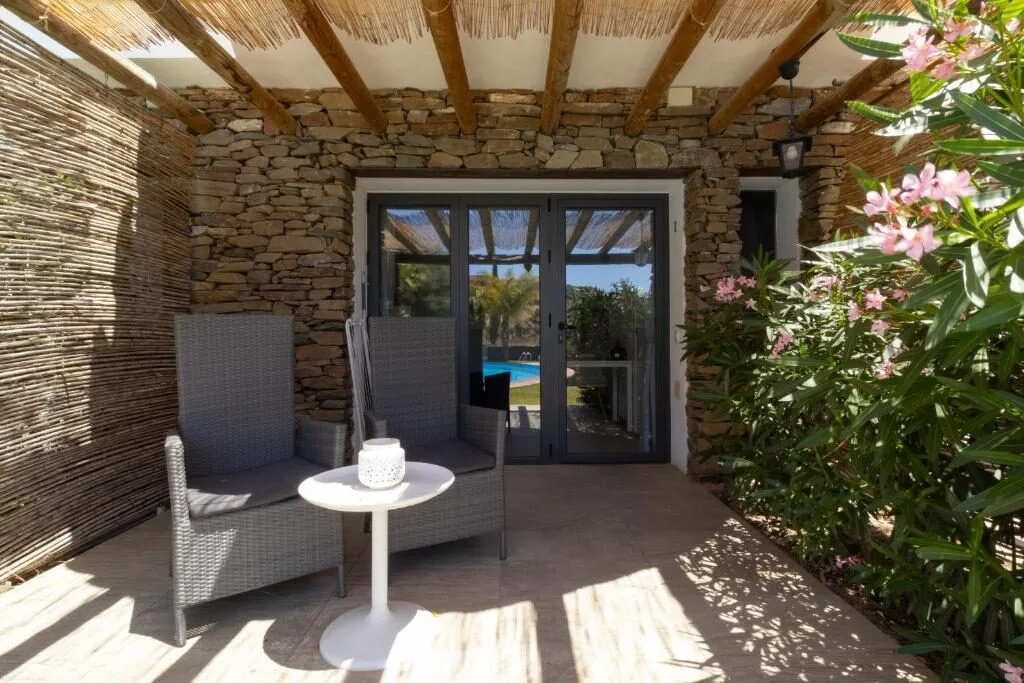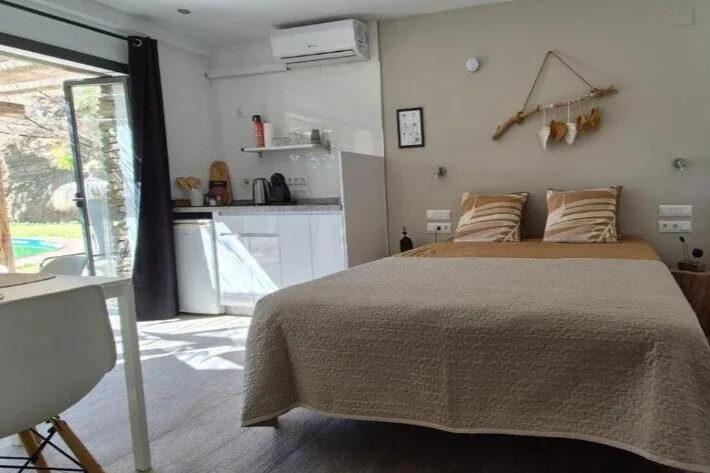 Onze twee-persoons studio’s (20m²) bevinden zich direct aan het zwembad en bieden een prachtig uitzicht en directe toegang tot de tuin. Elke studio beschikt over een eigen terras met verstelbare stoelen, ideaal om te ontspannen en te genieten van de zon.